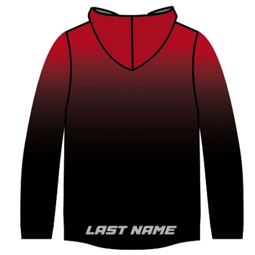 4-way stretch polyester fleece is light and breathable. The perfect athletic fit that doesn’t bunch or snag. This is a thinner hoodie with an open-bottom scoop cut. Can be customized for $5.00 with a name on either the left sleeve OR on the lower back.